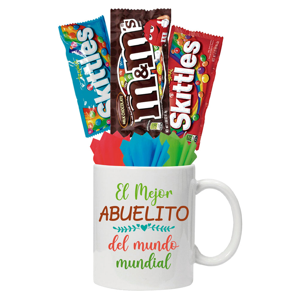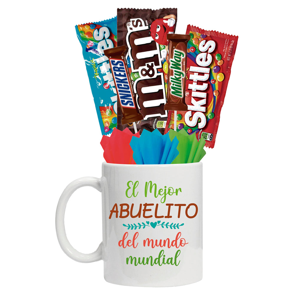 - Paquete 3: 1 taza 11 oz, 3 chocolates y 2 dulces.