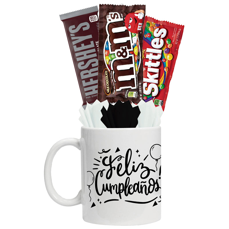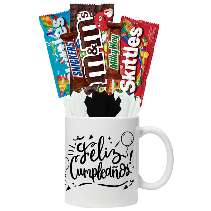 - Paquete 3: 1 taza 11 oz, 3 chocolates y 2 dulces.