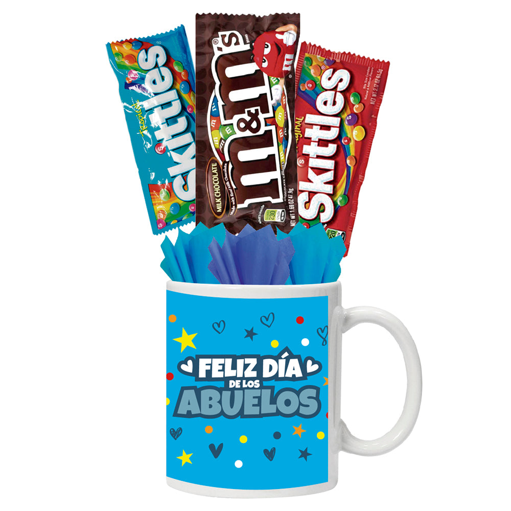 - Paquete 3: 1 taza 11 oz, 3 chocolates y 2 dulces.