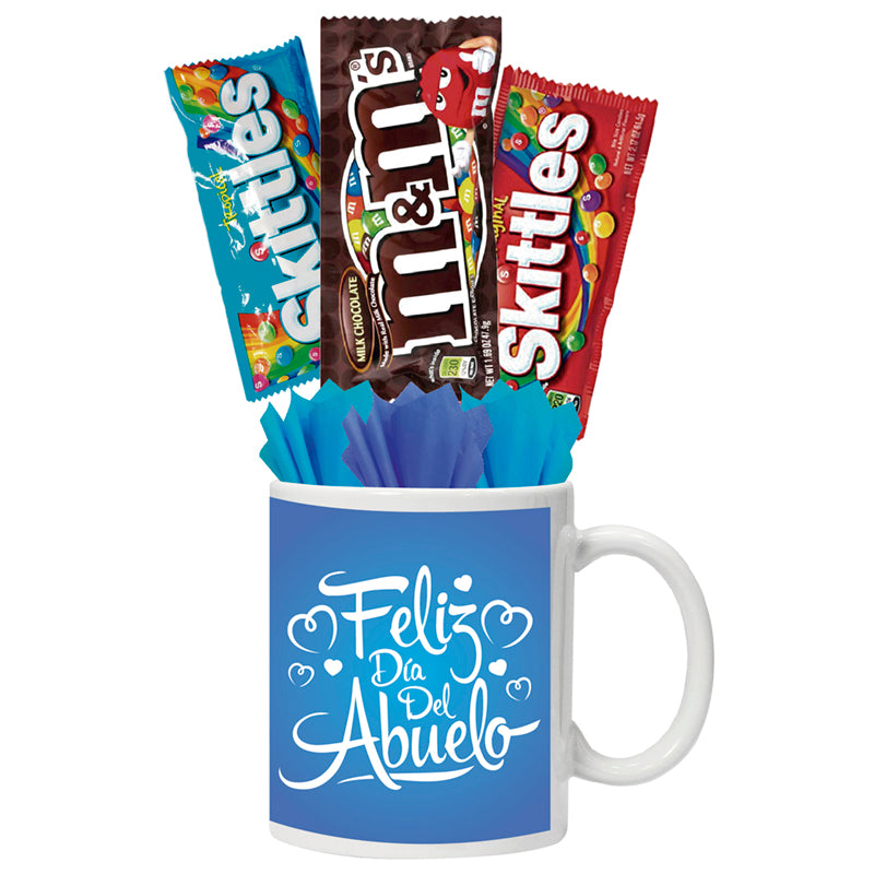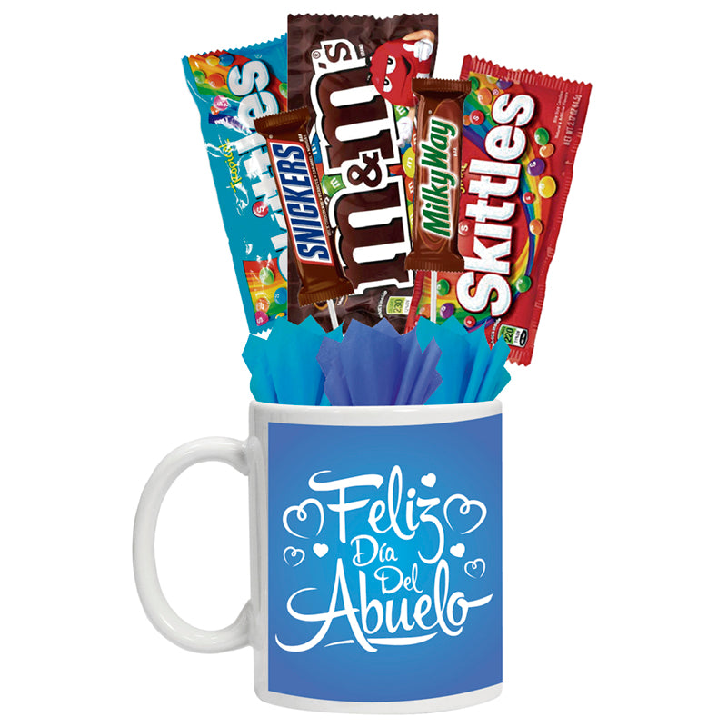 - Paquete 3: 1 taza 11 oz, 3 chocolates y 2 dulces.