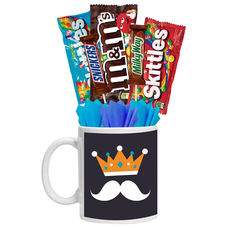 - Paquete 4: 1 taza 11 oz, 2 dulces, 1 chocolate y 1 globo metálico de 9".