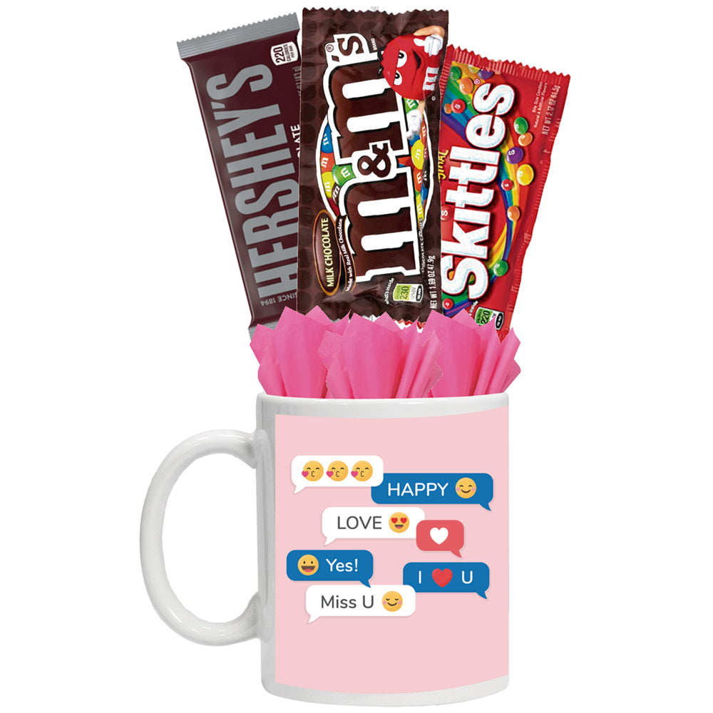 - Paquete 3: 1 taza 11 oz, 3 chocolates y 2 dulces.