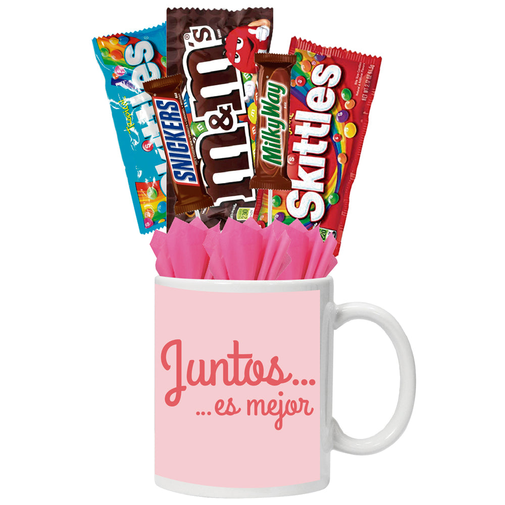 - Paquete 2: 1 taza 11 oz, 2 chocolates y 1 dulce.