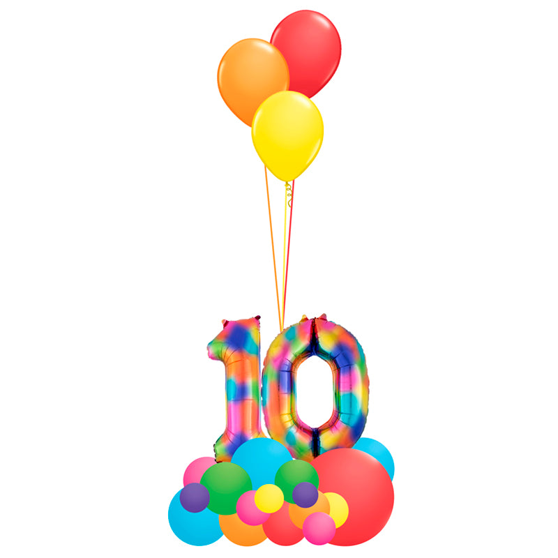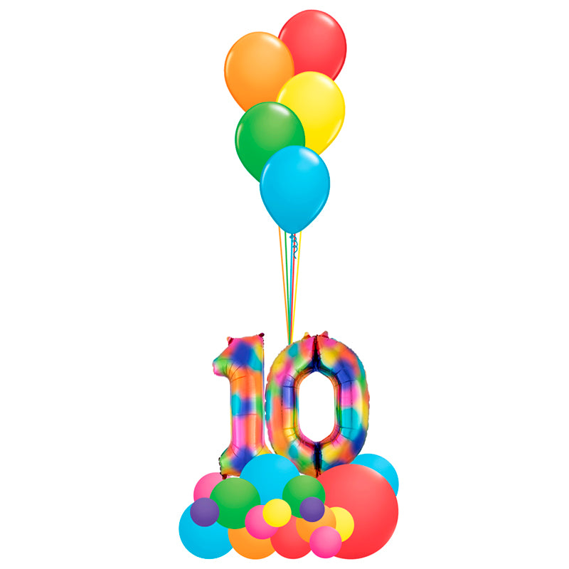 - Modelo 1: 3 globos de látex, 2 números metálicos de 34" y base de globos (1 látex de 3´, 3 látex de 16", 5 látex de 11" y 5 látex de 5").
