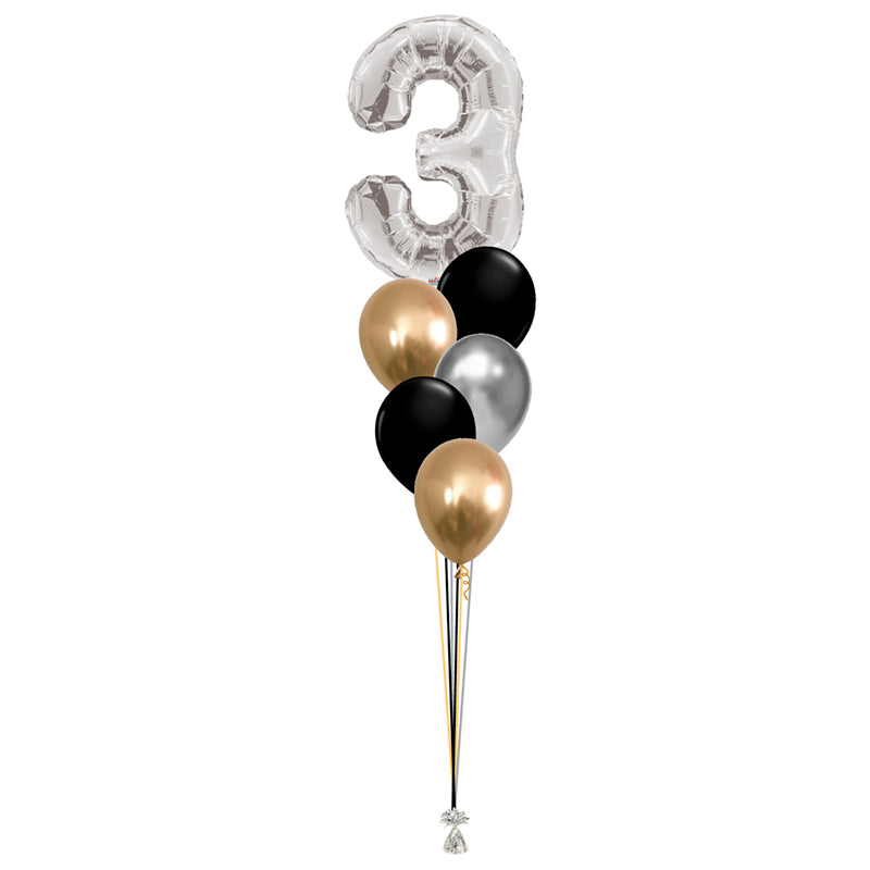 Lo que incluye: 1 globo de número metálico de 34" y 5 látex 11".