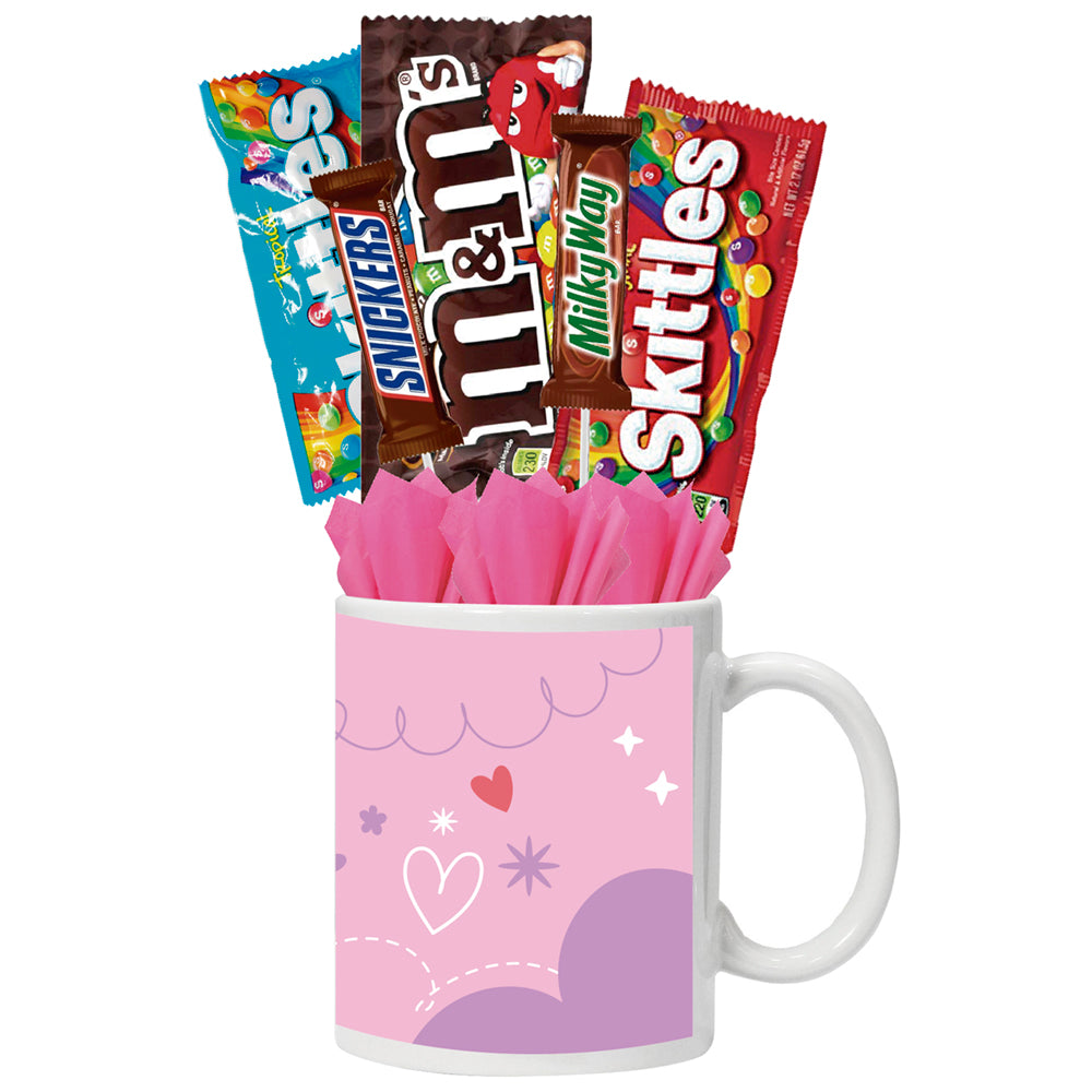 - Paquete 3: 1 taza 11 oz, 3 chocolates y 2 dulces.